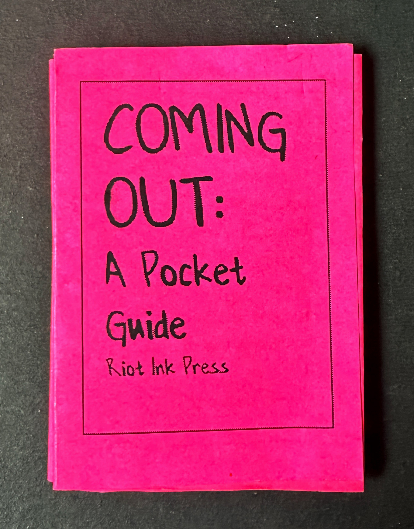 'Coming Out: A Pocket Guide' is a thoughtful and supportive mini zine offering practical advice and reflections for anyone navigating their coming out journey. Author: Varsha Panikar Publisher: Riot Ink Press Format: Mini Zine Pages: 24