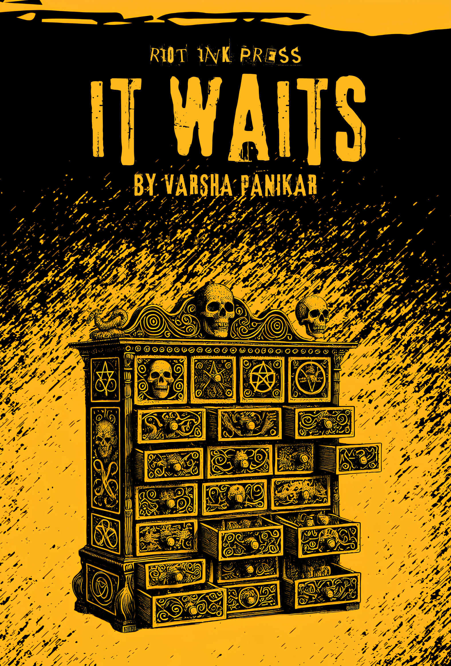 Step into post-independence India with 'It Waits', a chilling graphic horror novella where reality blurs and ancient horrors linger. Drawn to a sinister cabinet holding objects from forgotten realms, the protagonist confronts whispers, shadows, and an inevitable fate. Penned and illustrated by Varsha Panikar, It Waits explores themes of identity, isolation, and the haunting weight of history. With haunting visuals and evocative storytelling, this novella is perfect for fans of atmospheric psychological horror and dark folklore. Each purchase includes a mysterious keepsake tied to the story and two exclusive postcards, making this a must-have for collectors and fans alike. Author and Illustrator: Varsha Panikar Publisher: Riot Ink Press ISBN: 978-93-341-4511-3 Format: Zine Pages: 48'